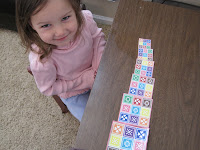 Quilt Floor Numbers: I made these large floor numbers so that we can play a hopscotch type game. I call out a number and she jumps to it! You could also have them put the cards in numerical order. The number cards go from 1-10.